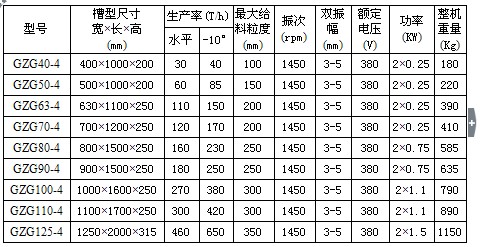 ●GZG式振動(dòng)給料(部分型號,僅供參考)